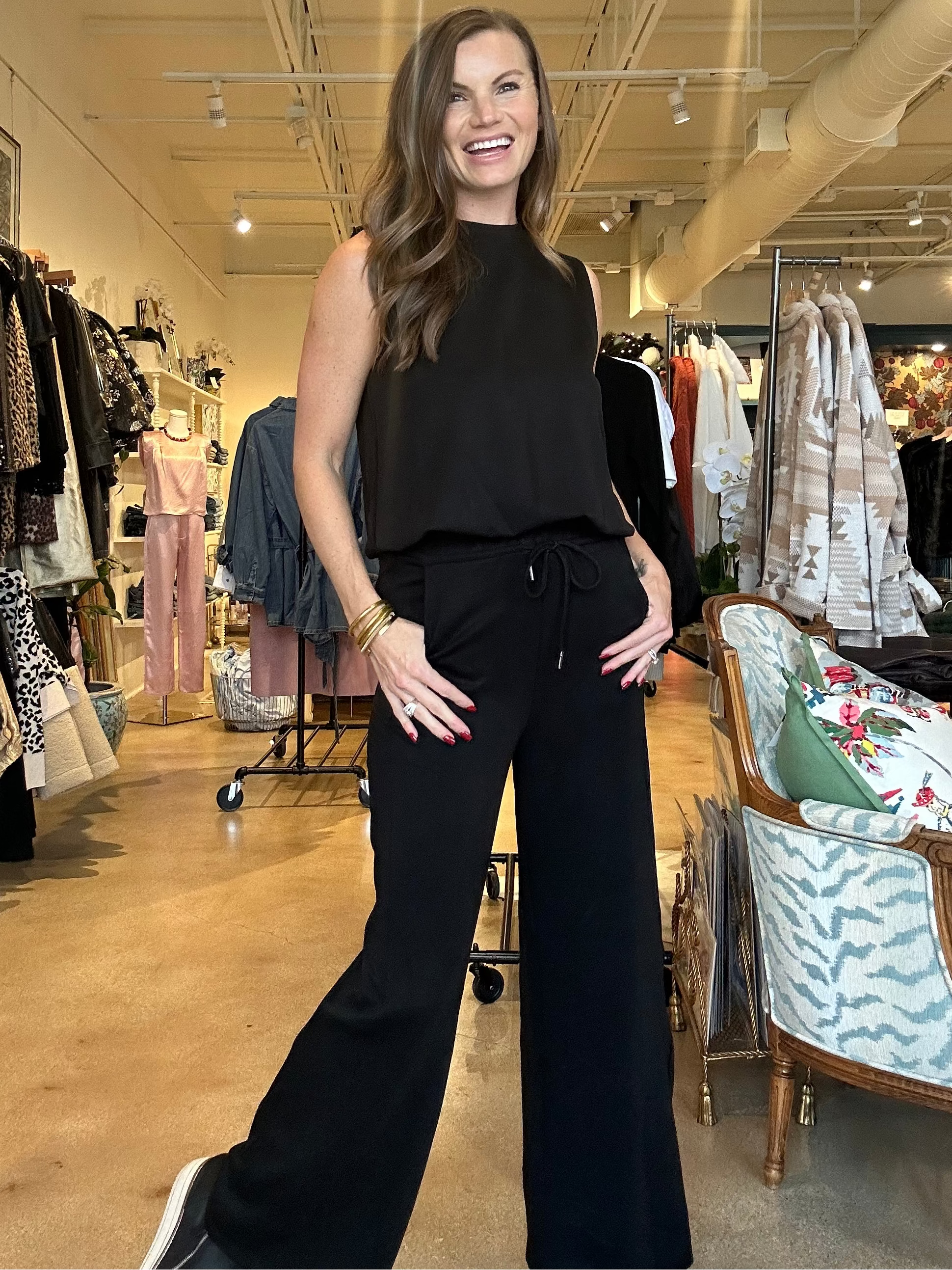 These wide-leg lounge pants are the kind you put on “just for the house” and then absolutely wear to run errands because they’re that comfy and that cute. The lightweight, stretchy knit drapes so nicely, the elastic drawstring waist lets you customize the fit, and the side pockets make them an easy yes for busy days. Pair them with the matching lizzie bubble tank for a cozy little set that still looks polished.