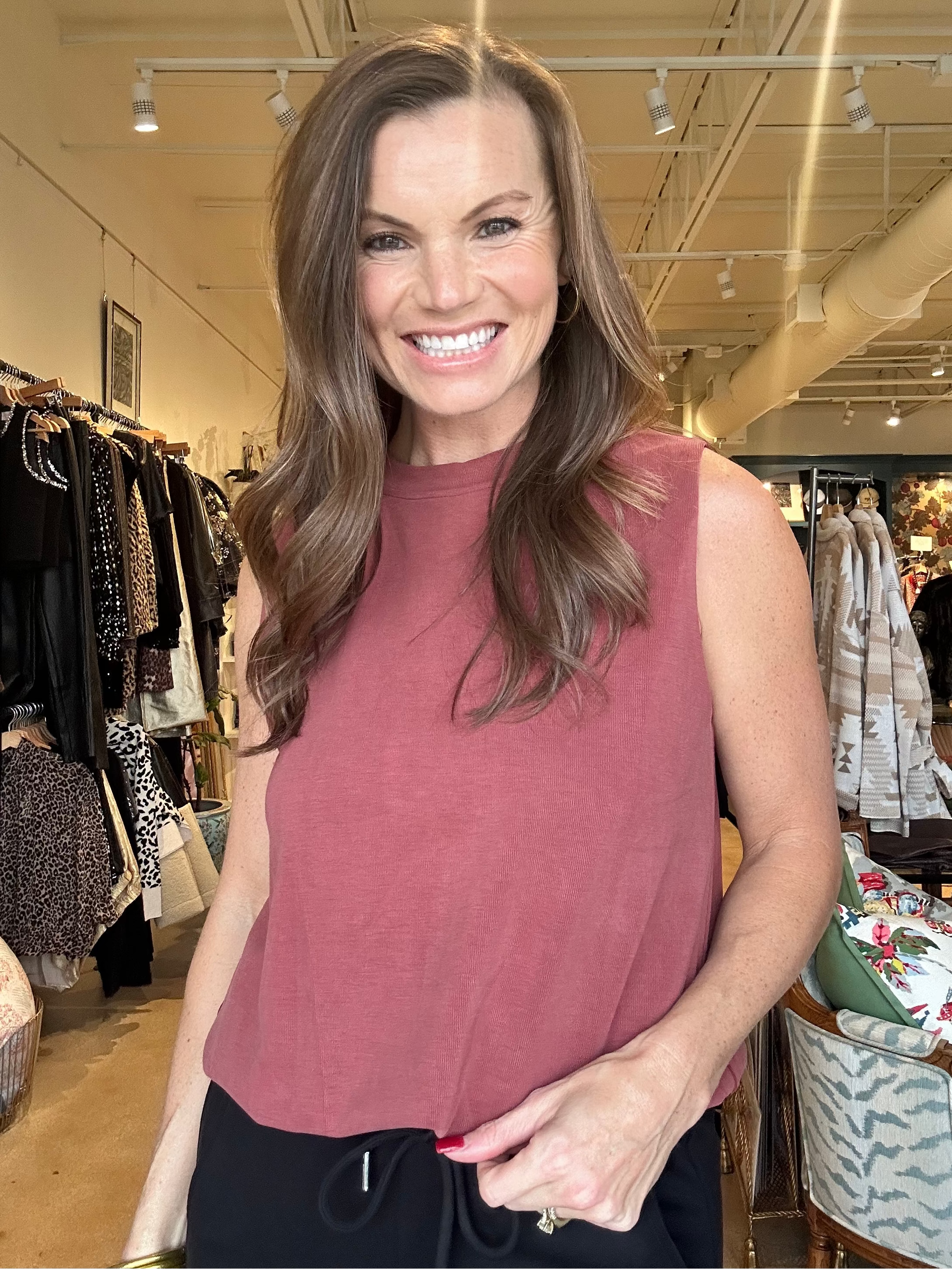 This soft bubble tank is one of those “trust me, you’ll wear it constantly” pieces—easy, polished, and so good for the days when you’re juggling a lot but still want to look pulled together. The bubble hem gives it that cute, effortless shape that works with everything, whether you’re pairing it with a slip skirt for a night out or tossing it on with jeans for school pickup. It comes in rust and black and has that stretchy, drapey feel we all love in a closet staple.