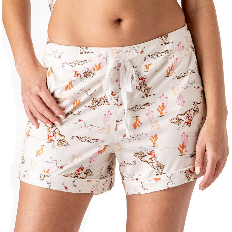 Create everyday comfort and ease with these soft lounge shorts—made for slow mornings, cozy nights, and everything in between. The playful Hold Your Horses western print adds a fun little wink of personality, making them the pair you’ll reach for whenever you need a moment of softness in a busy season.