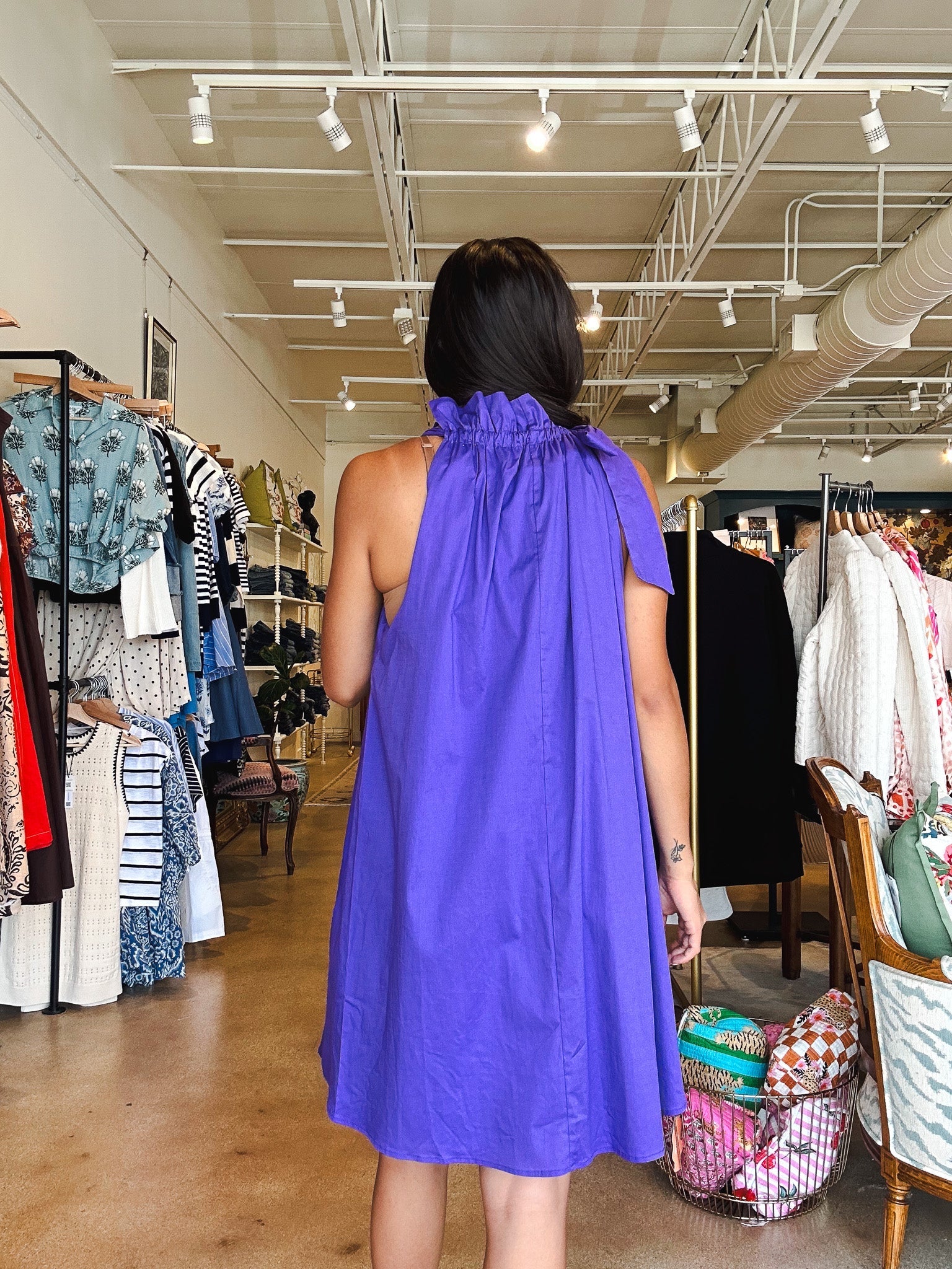 The ultimate gameday showstopper, the Gracie Dress brings bold energy and easy style in one vibrant look. With its halter neckline, ruffled collar, and flowy swing shape, this purple mini makes cheering on your team (or hitting post-game plans) effortlessly chic and comfortable.