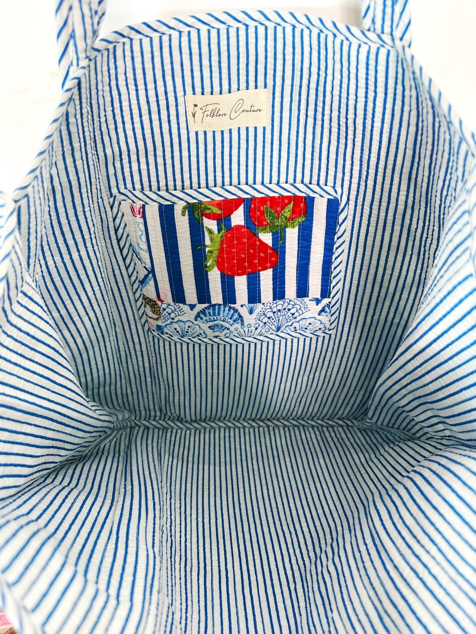 Quilted Tote Bag - Blue Patchwork - Elle Maxine