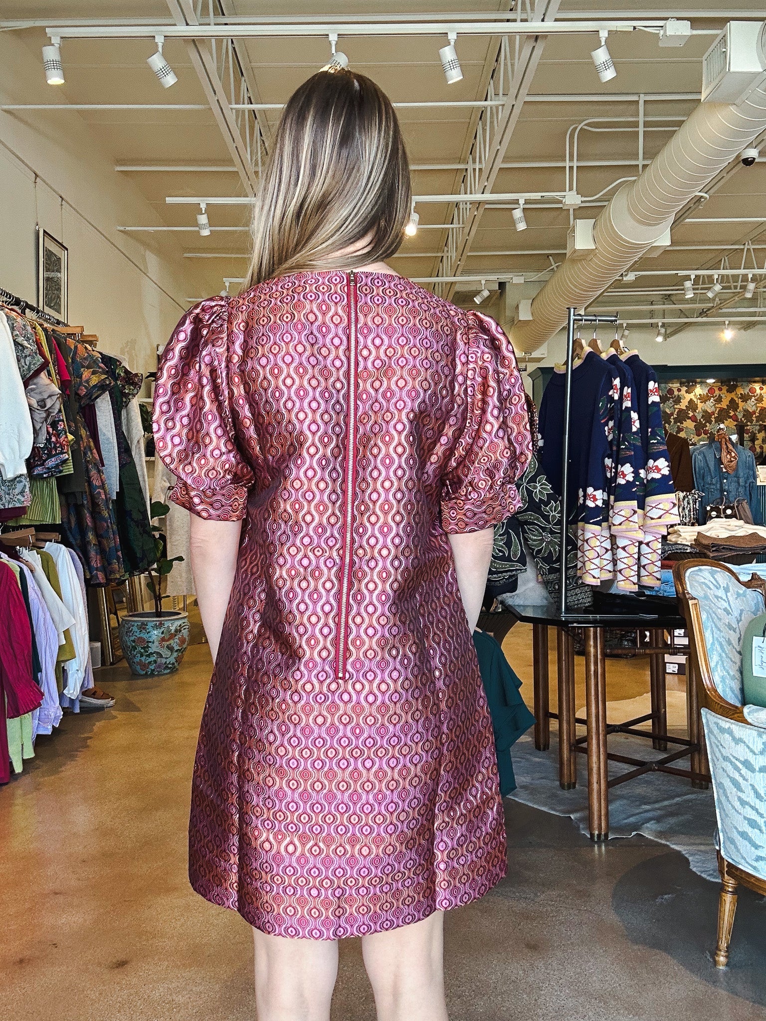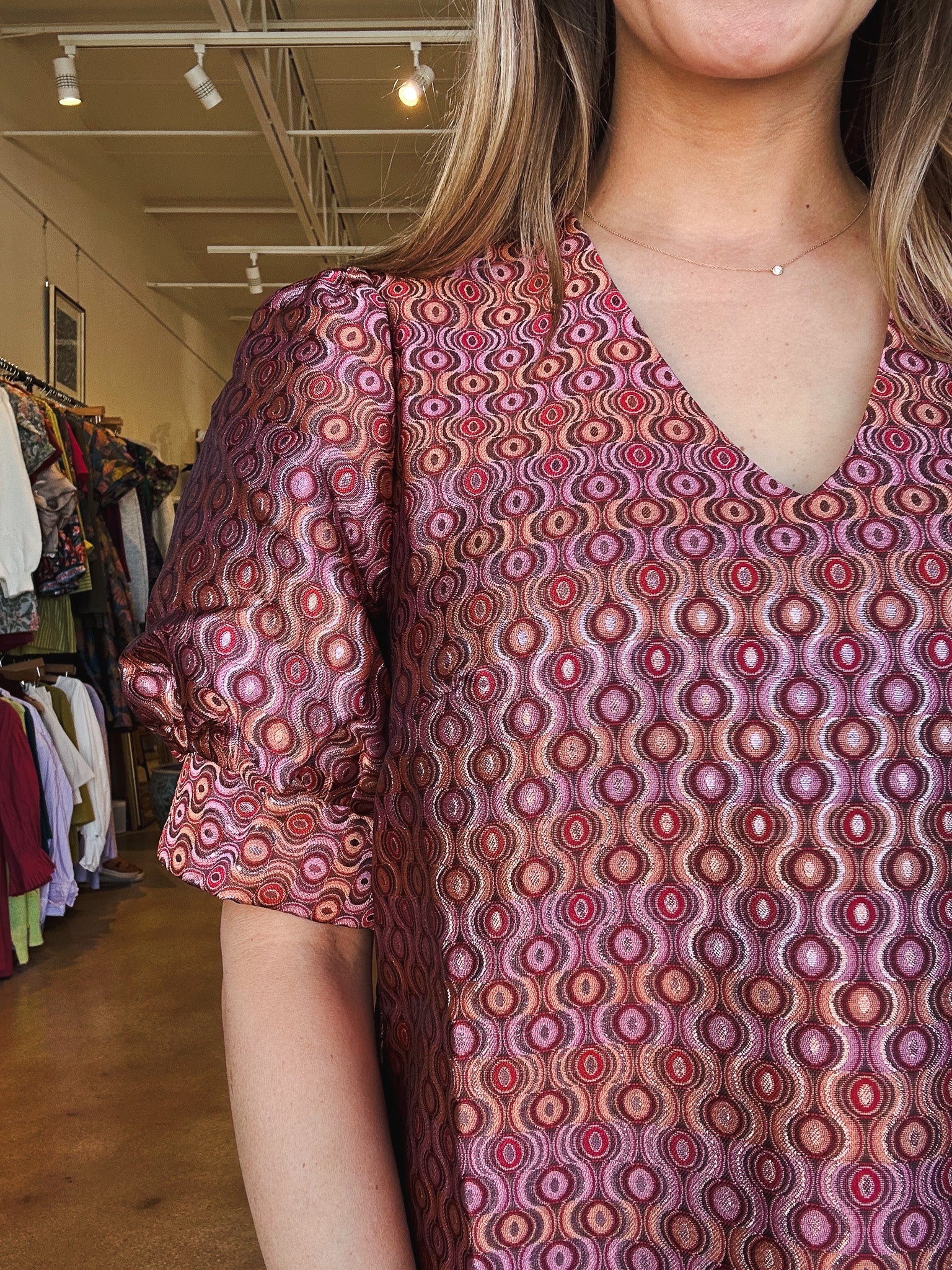 Step into the spotlight with our Groovy Grid Dress, a bold mix of retro print and modern shape. The puff sleeves and shimmering jacquard fabric create a fun, statement look that’s perfect for a dinner party or festive night out. Its structured yet easy fit keeps you feeling confident and comfortable wherever the evening takes you.