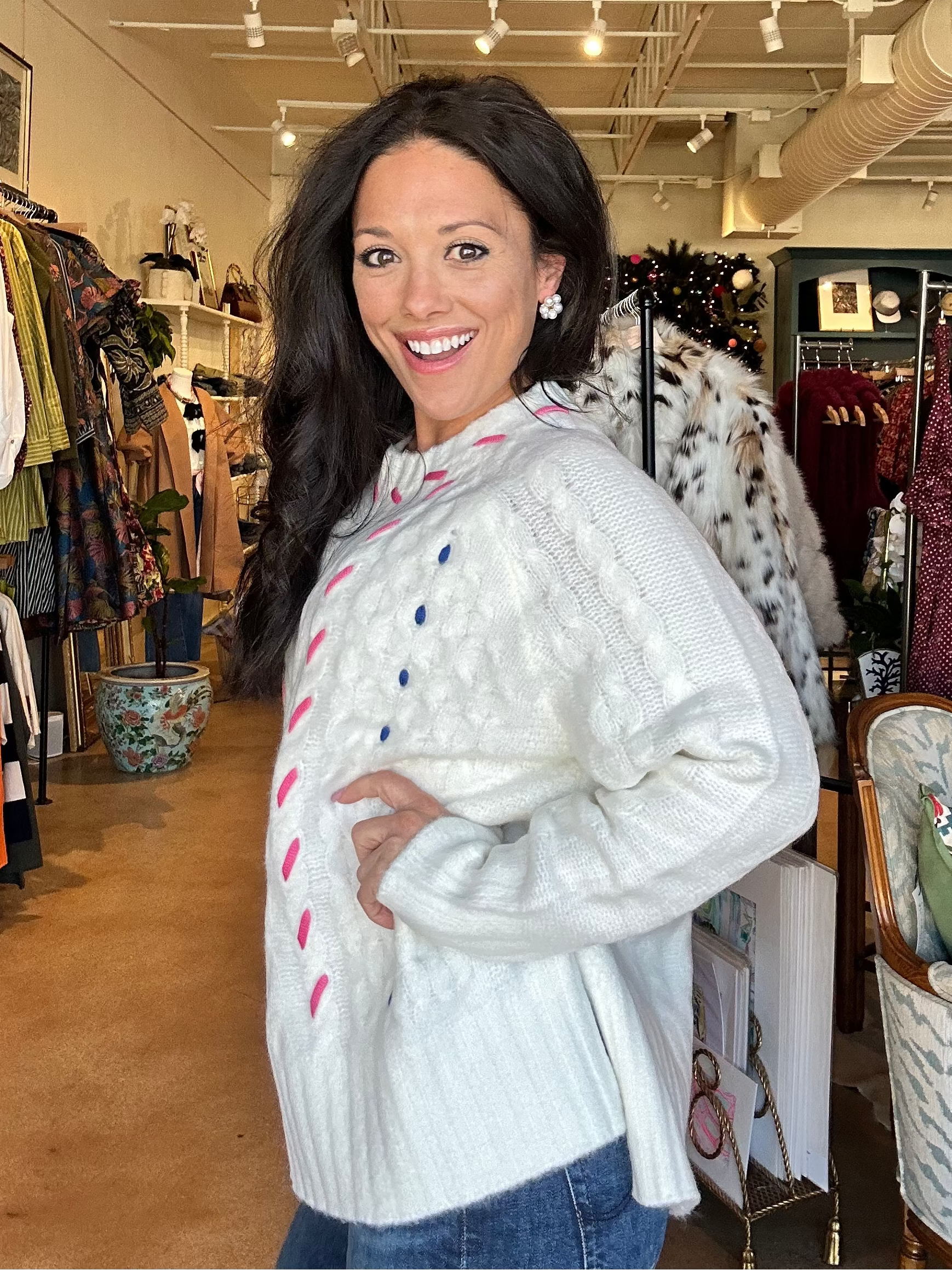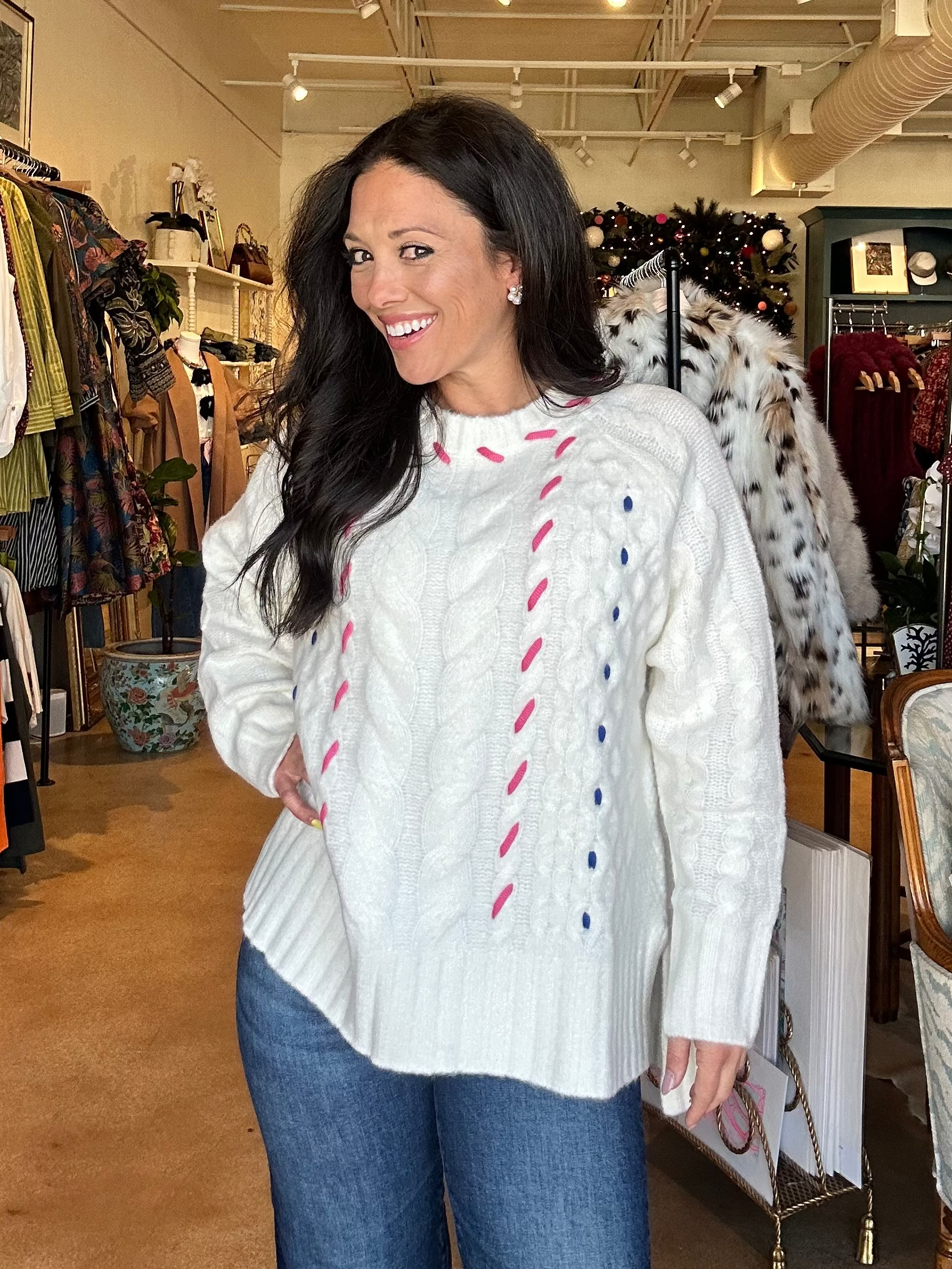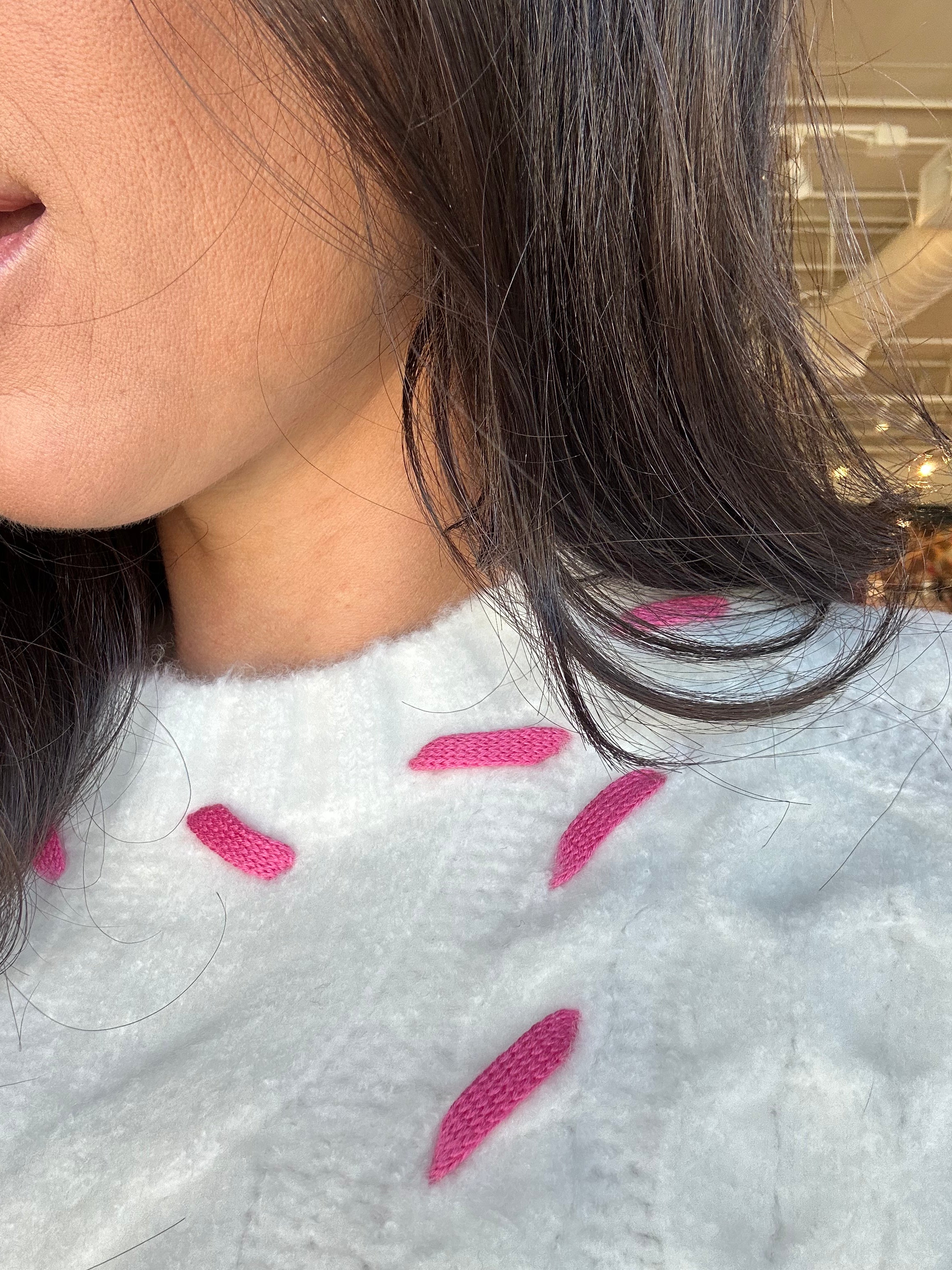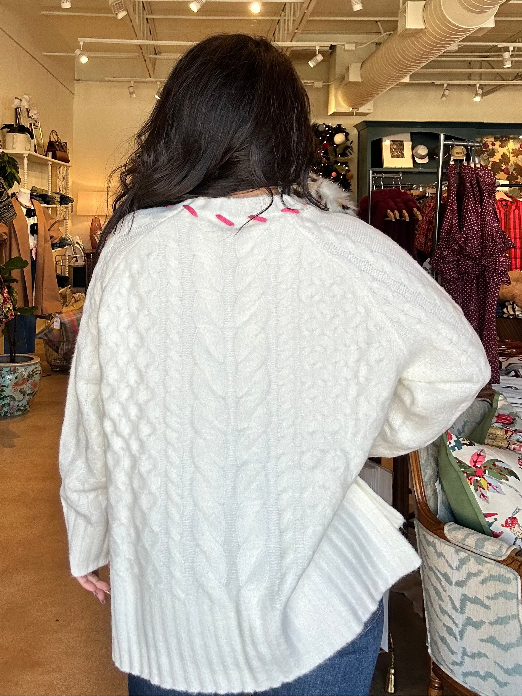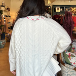 Knit with love and a hint of holiday magic, the Ribbons and Romance Sweater is your cozy season must-have. Its soft cable knit design and delicate ribbon details bring a touch of whimsy to your winter wardrobe—perfect for fireside lounging or festive nights out.