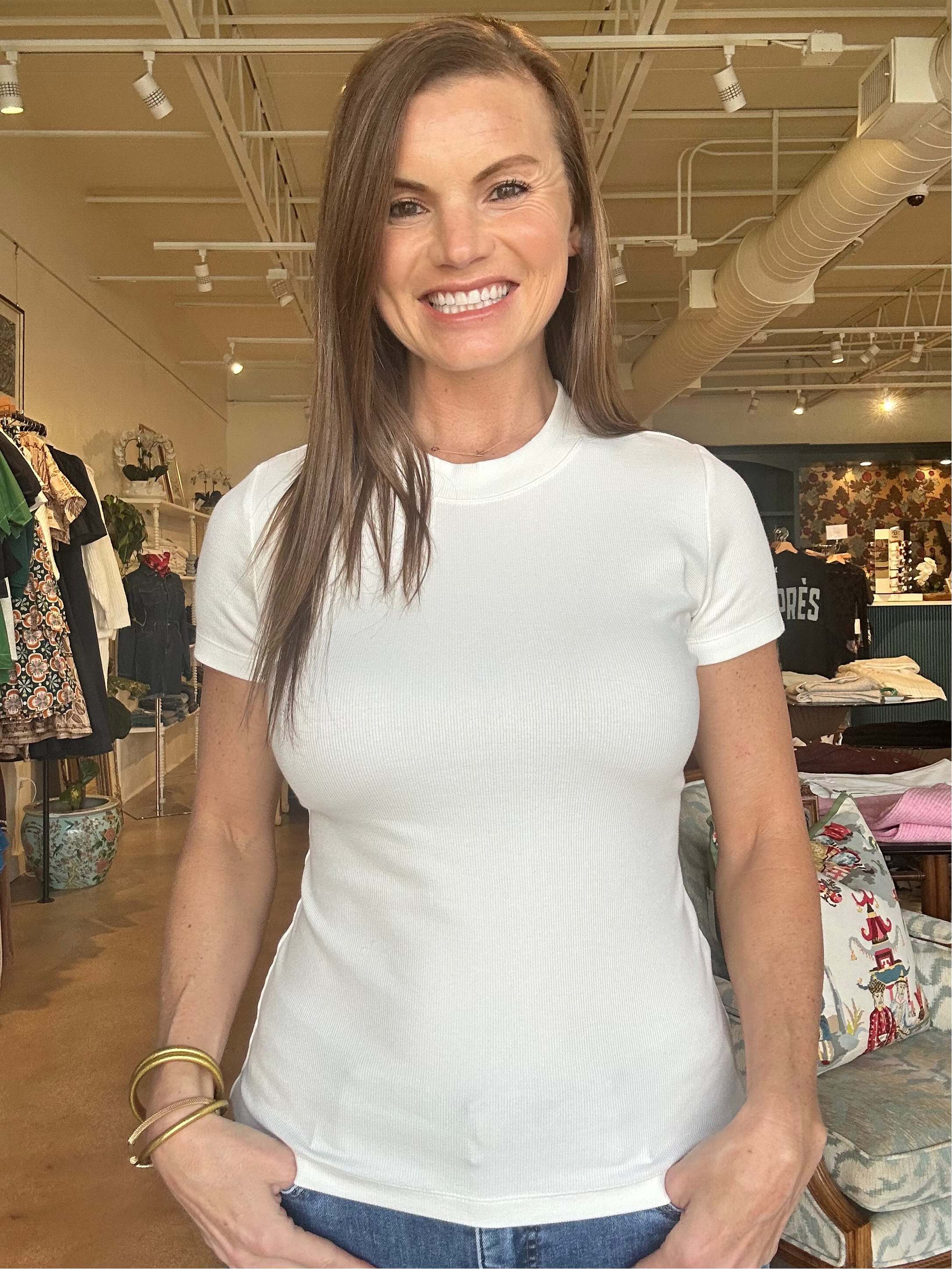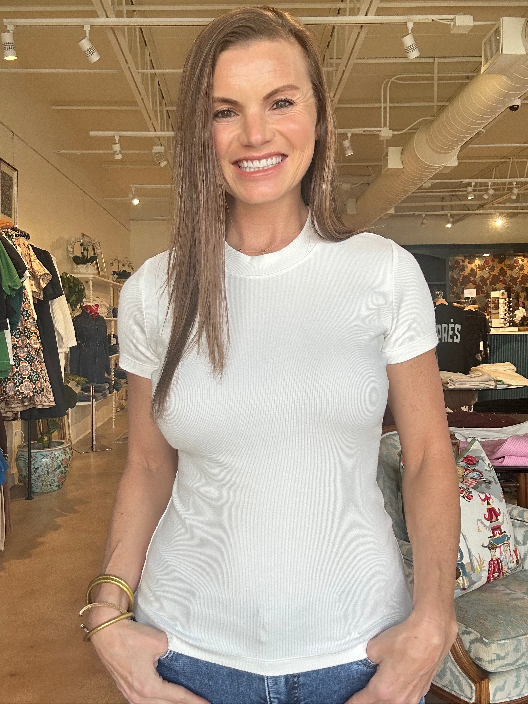 Langley Short Sleeve Rib Tee- White