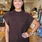Warm in tone and timeless in style, this sleeveless sweater is finished with a rolled neck and subtle ribbing at the waist for a polished fit. Layer it over a crisp button-down or wear solo with trousers for an effortlessly chic look.