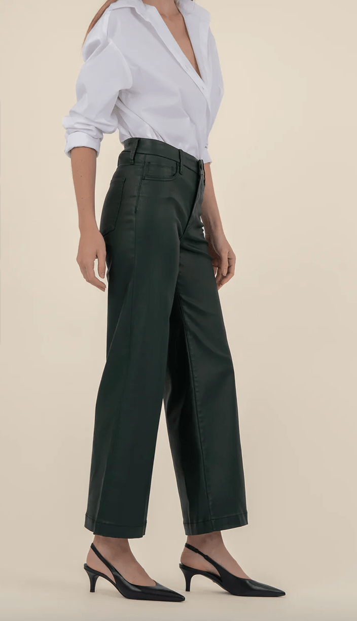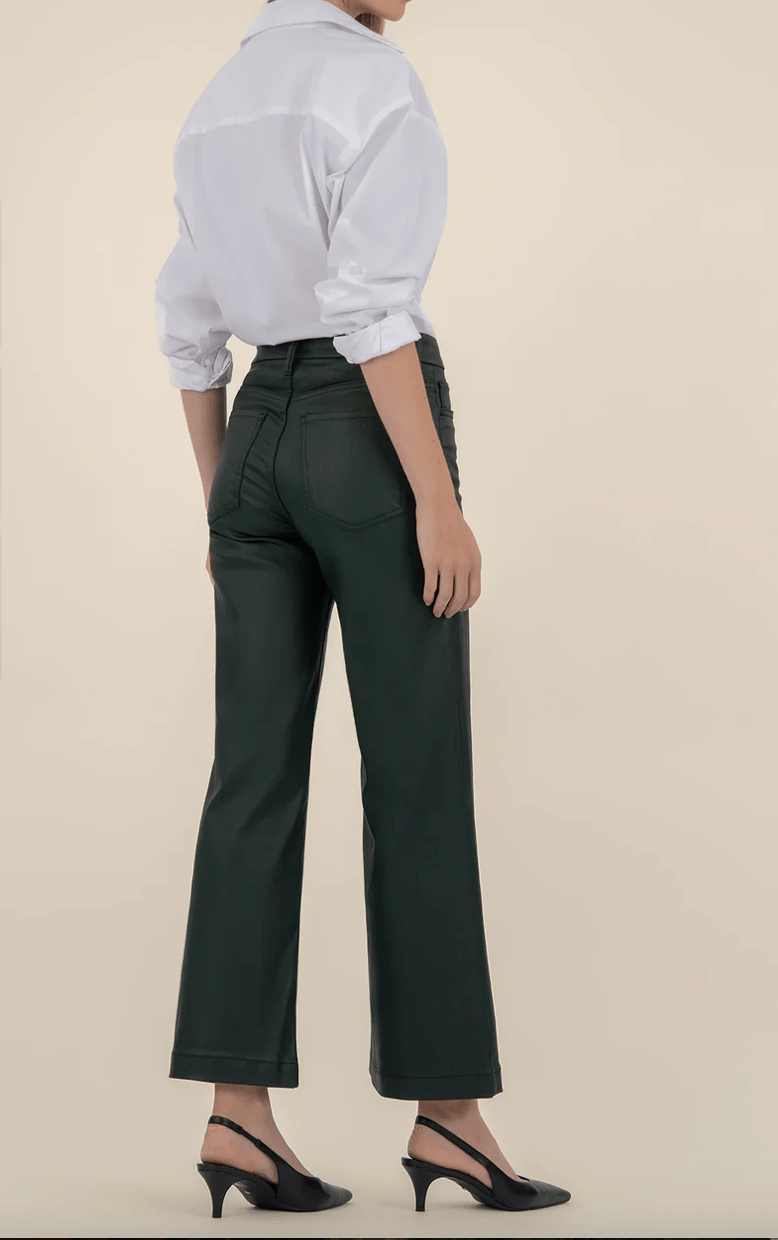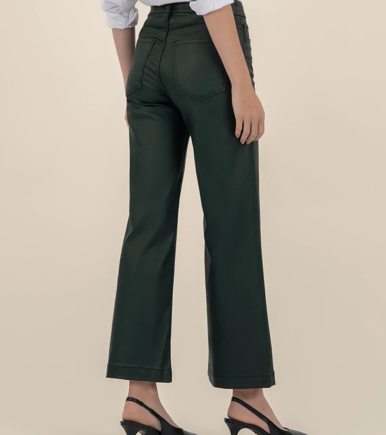 Stand out in these coated wide-leg jeans made with ankle-grazing hems and Fab Ab front pockets that comfortably shape and smooth with raw hems in a long inseam.