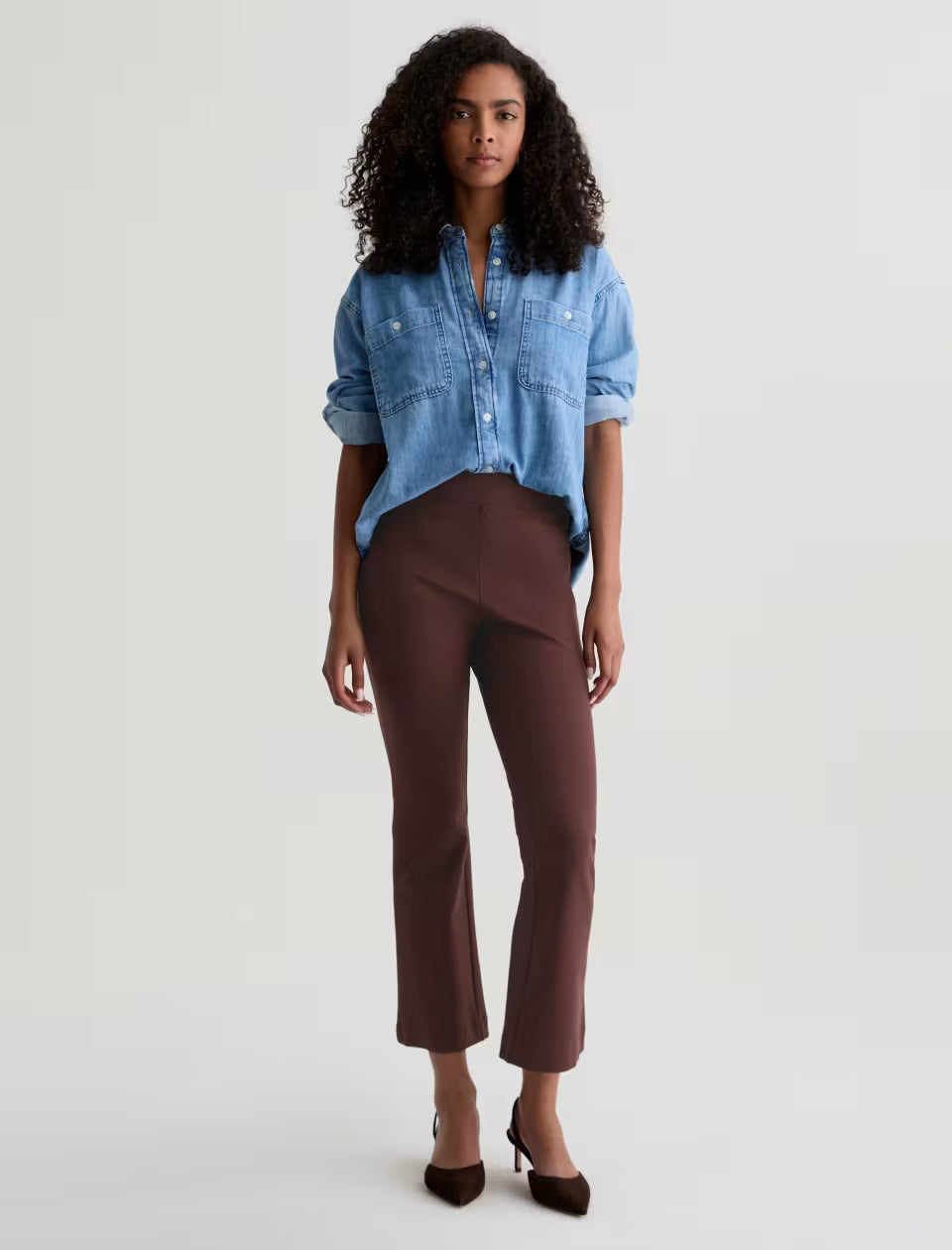 The Salma is a women’s pull-on flare pant with a high-rise fit. Designed for all-day comfort and flexibility, this style blends a flattering silhouette with an easy, streamlined feel. Model is wearing a size S.