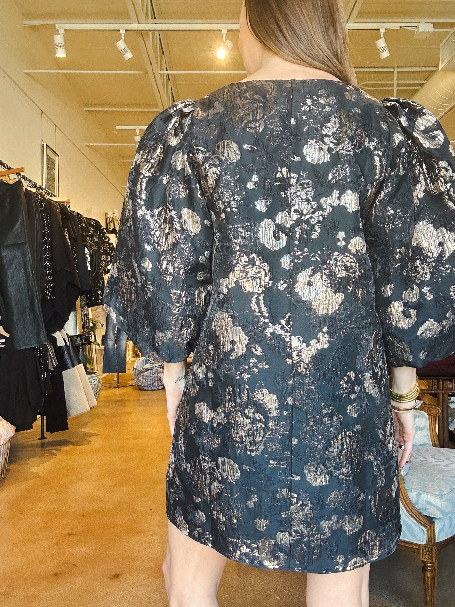 Make every holiday moment feel a little more magical in this floral jacquard mini—equal parts festive, flattering, and so easy to love. The black, white, and gold pattern gives you that elevated shimmer without feeling over the top, while the 3/4 puff sleeves and hidden side pockets keep it playful and wearable for every event on your calendar. It’s a go-to dress for parties, dinners, and any night you want to feel confidently put together.