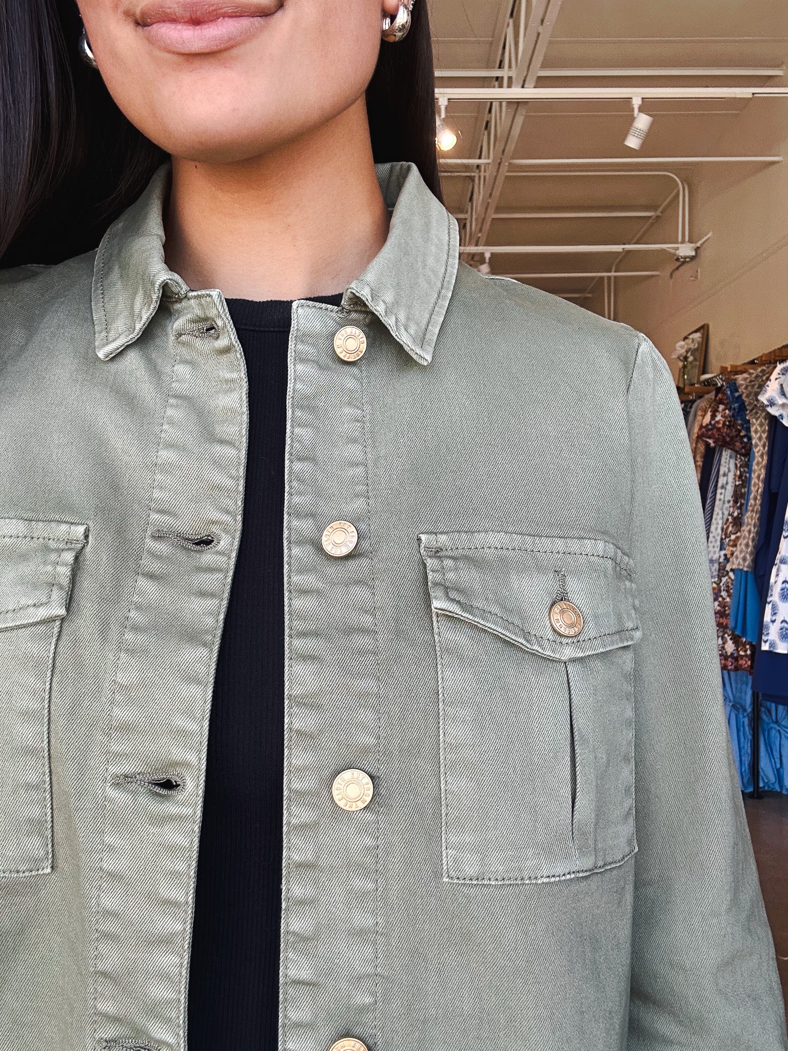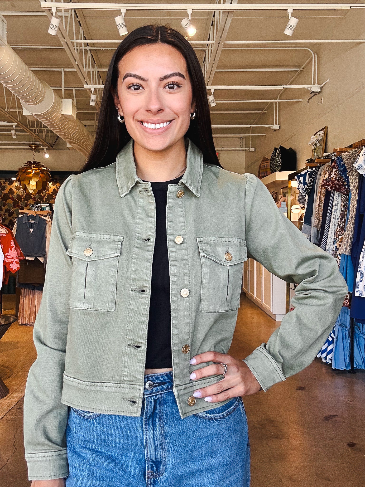 A fresh take on a classic, this trucker jacket comes in a soft light olive green that layers effortlessly over everything. Lightweight yet sturdy, it’s the piece you’ll grab for school drop-offs, weekend errands, or a casual dinner out.