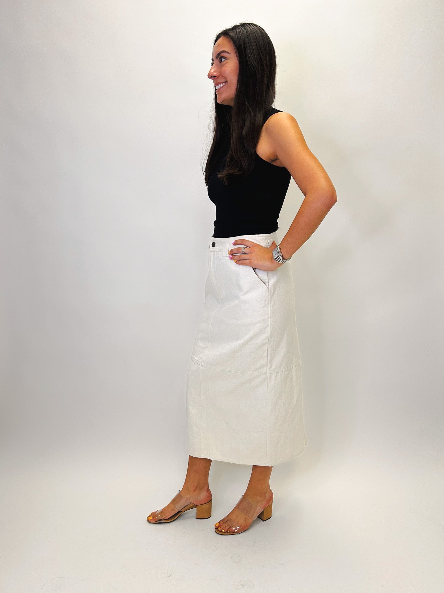 Made for the days when you need to look pulled together but still feel like yourself, the Dressy Twist Tee in black adds a polished twist (literally) to your go-to look. With a soft drape and subtle front detail, it’s the easiest way to elevate denim or pair with trousers for an effortless night-out vibe.