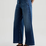 Create everyday ease and style with the Stella Dark Indigo Ankle Palazzo Jean—your go-to denim when you want to feel pulled together but still totally comfortable. The dark indigo wash and soft whiskering add a polished edge, while the wide flare and cropped ankle length keep things effortless and cool. Crafted from ultra-soft Japanese stretch denim, they hug just right without feeling tight, and the mid-rise fit means they sit comfortably at the waist. Perfect for everything from carpool to happy hour—just add a crisp white tee or a slouchy sweater.