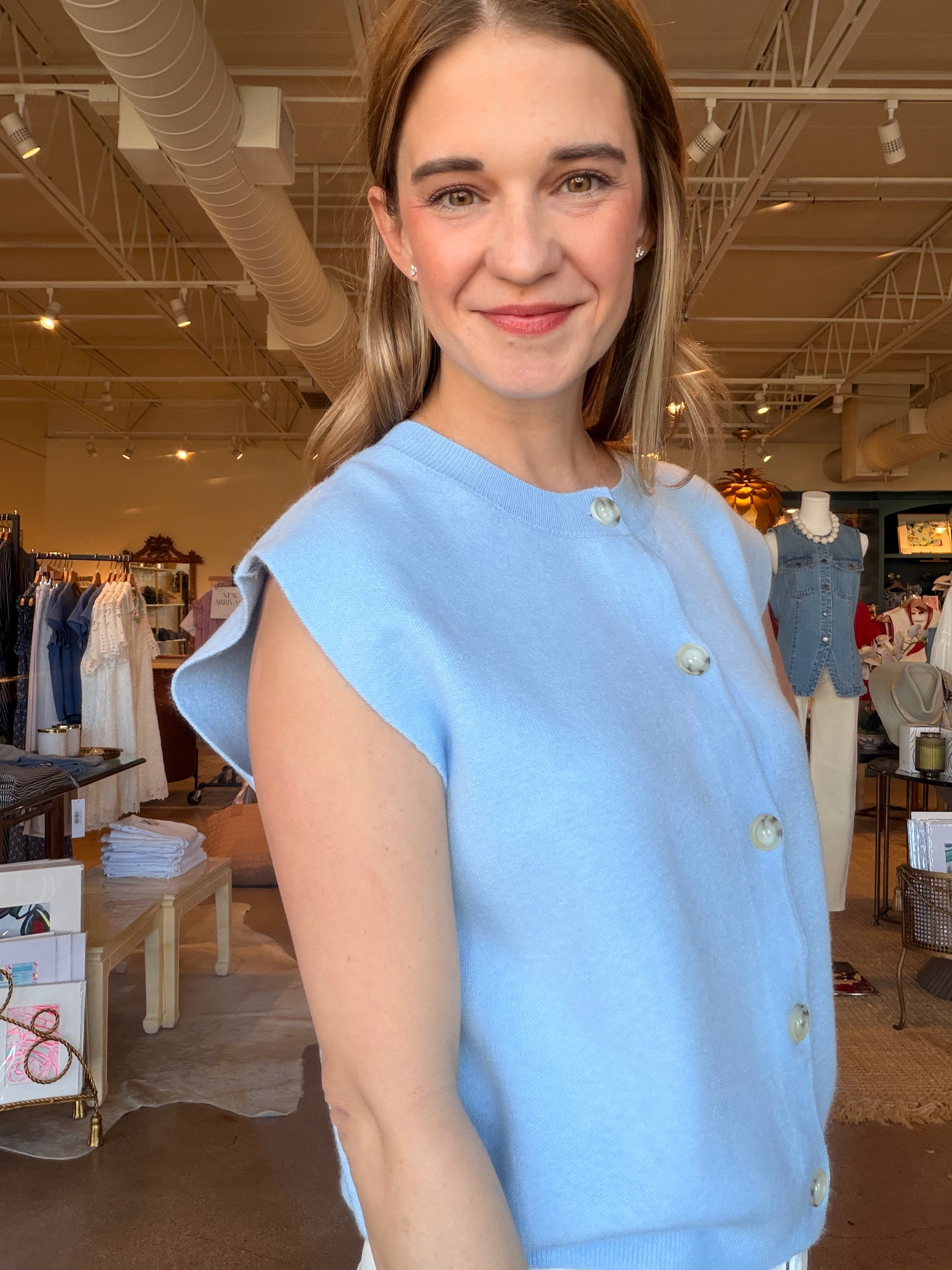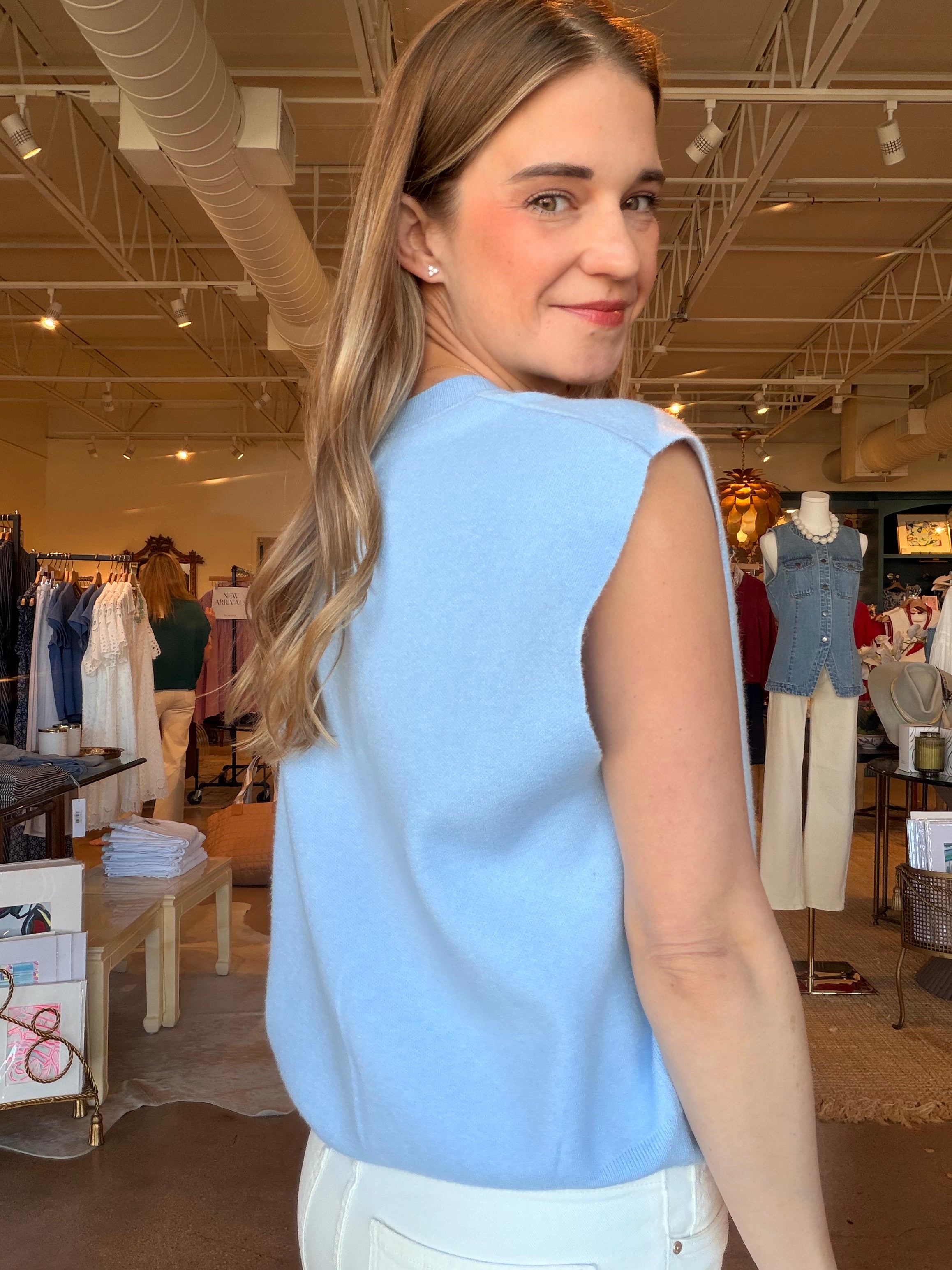 Beth Sleeveless Sweater- Blue