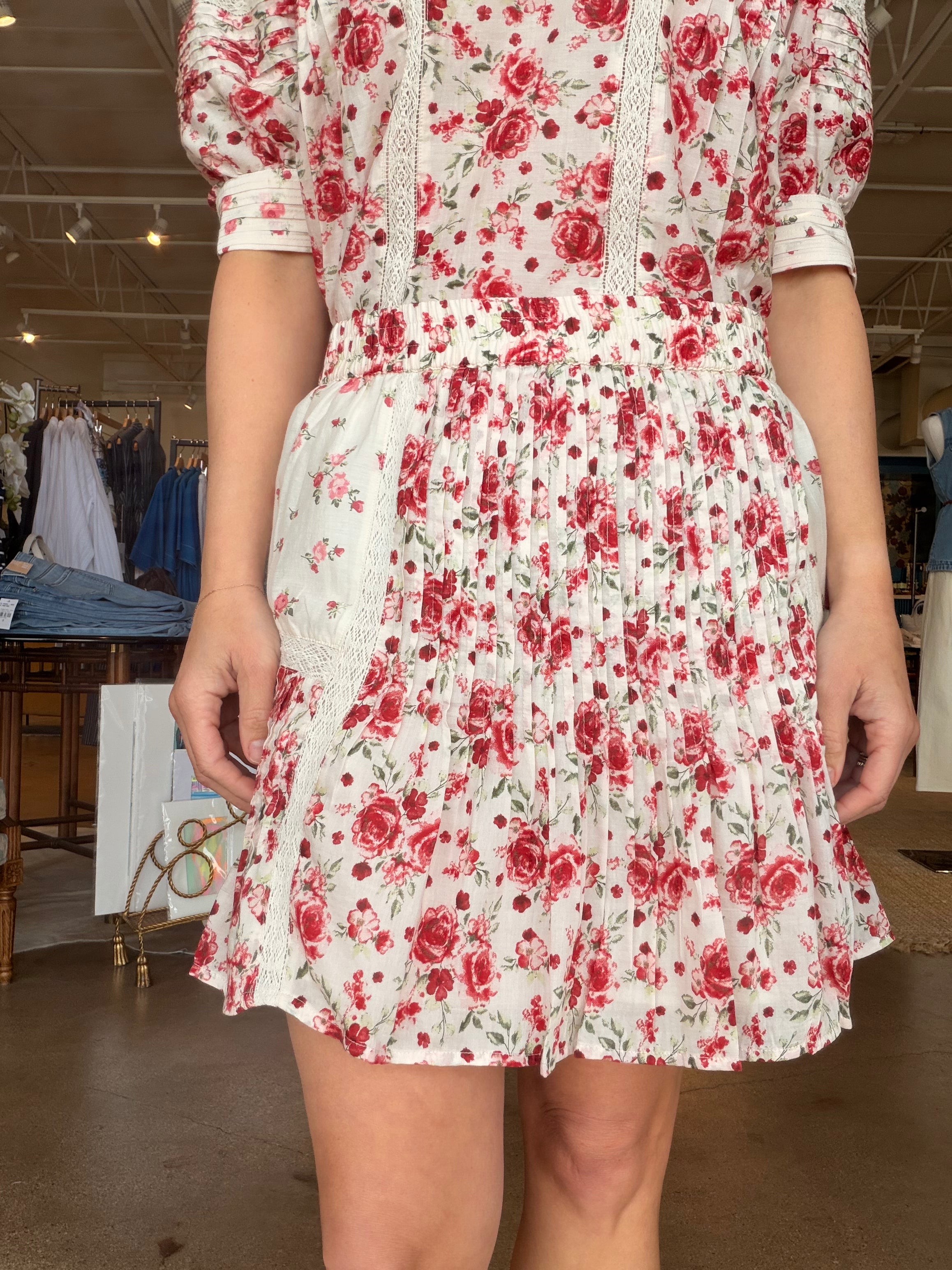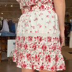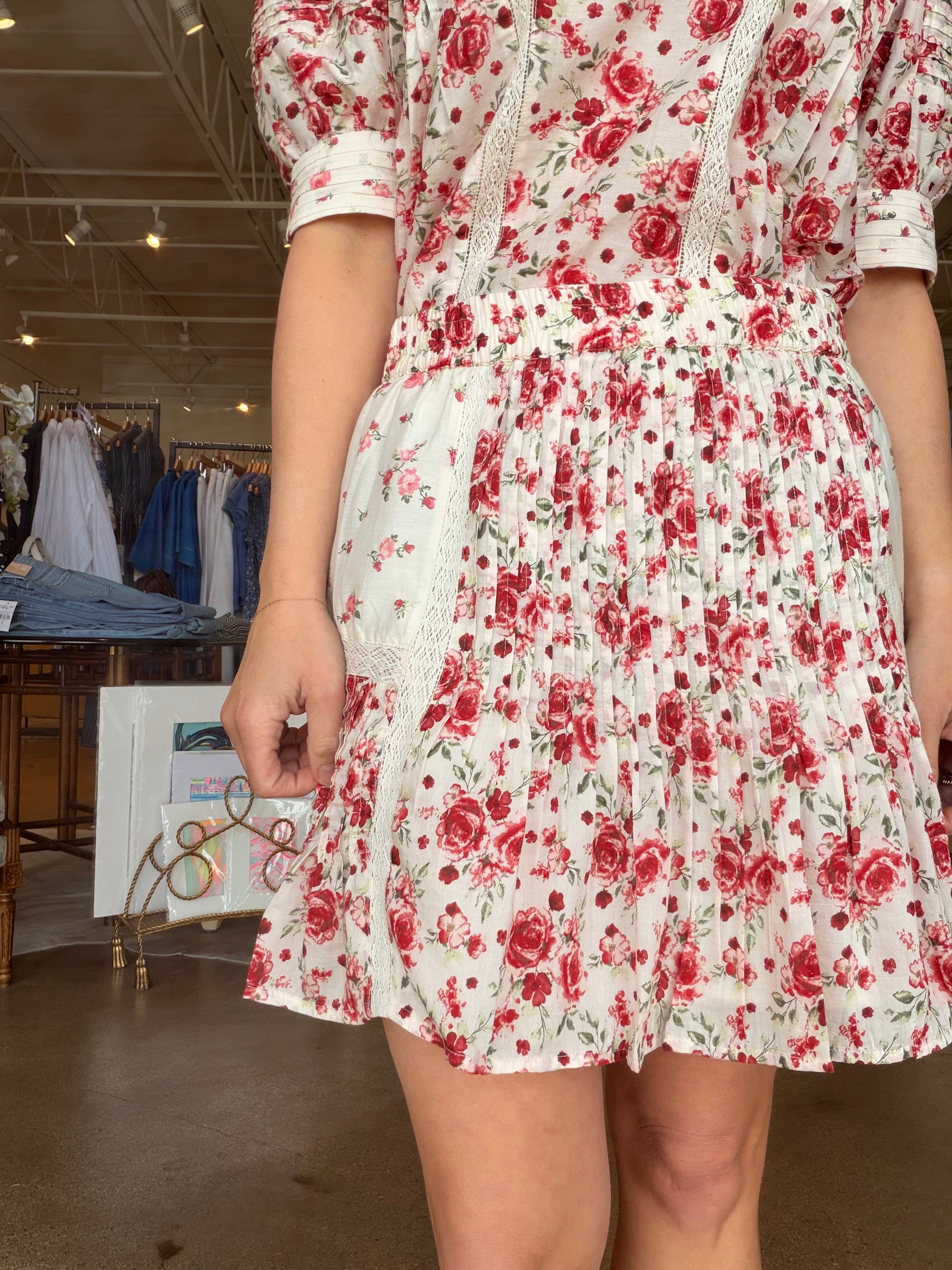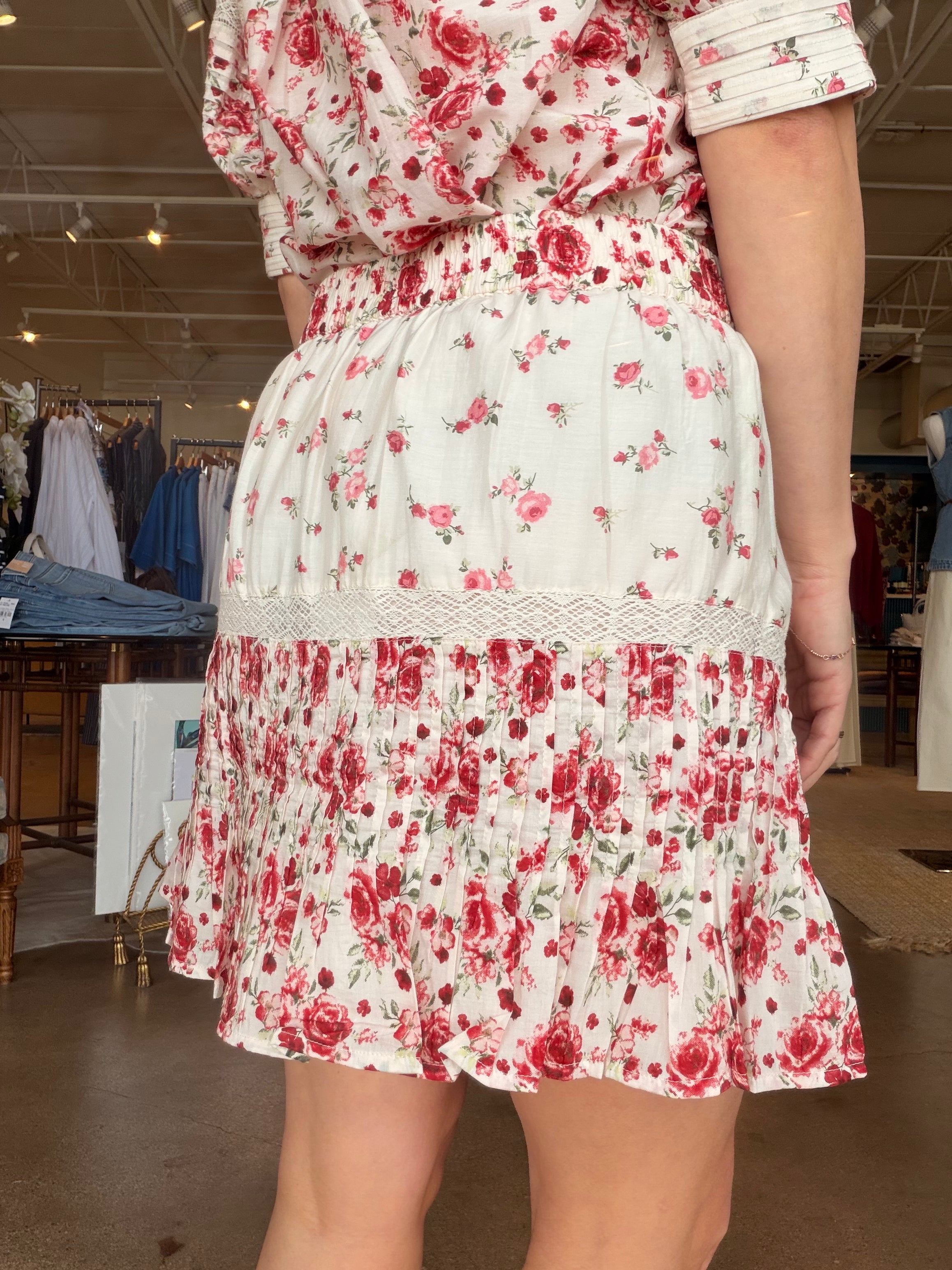Made from a lightweight cotton-silk blend, it has a soft drape that moves beautifully without feeling fussy. The 2" elasticized waistband sits comfortably at the waist, while pintuck detailing throughout creates subtle texture and dimension. Lux lace trim highlights the seams, and two scales of the spring rose print are mixed in for that extra layered look. Pair it with the Havara Top for a set moment or keep it simple with a knit and sandals for brunch, showers, or spring events.
