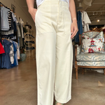 You’re going to love how easy these are to build outfits around. The Chloe Pant sits high on the waist with a relaxed wide leg and front patch pockets that give it that cool vintage-inspired feel, while the soft twill fabric keeps it comfortable all day. The antique pearl color is a warm cream that pairs beautifully with everything from a simple white tee and sneakers to a lightweight sweater or blouse for lunch, work, or travel days. The high-rise waist creates shape through the middle while the relaxed leg gives you that effortless, flattering drape.