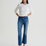If you love a straight jean but want just a little shape, this is your pair. The subtle bootcut starts right at the knee for a gentle flare, and the cropped ankle length gives it that modern, easy finish.