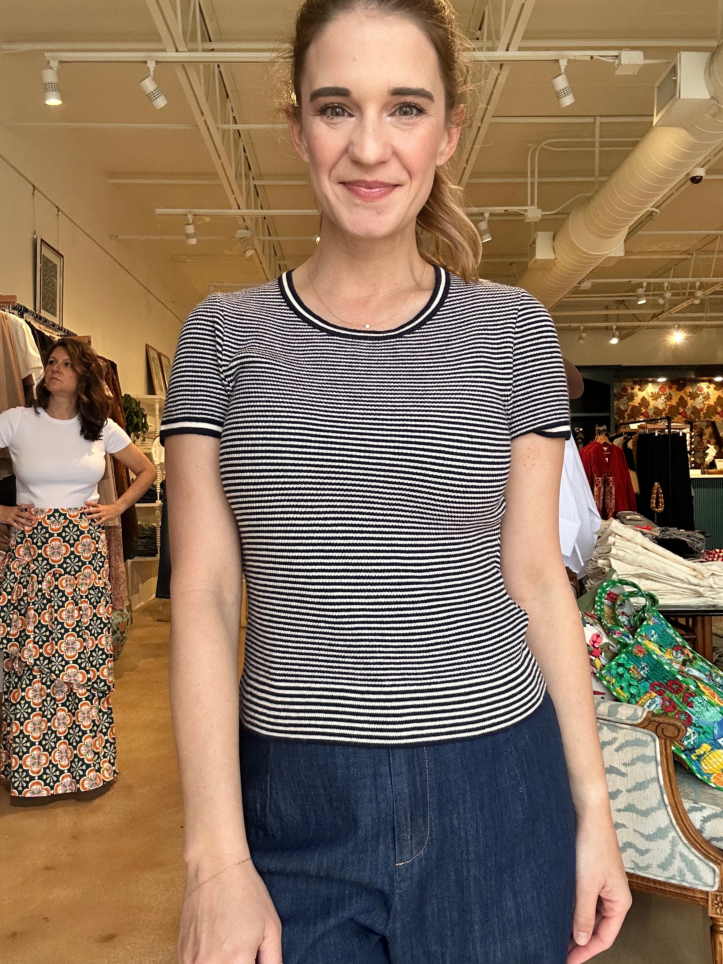 Hepburn Short Sleeve Sweater- Stripe