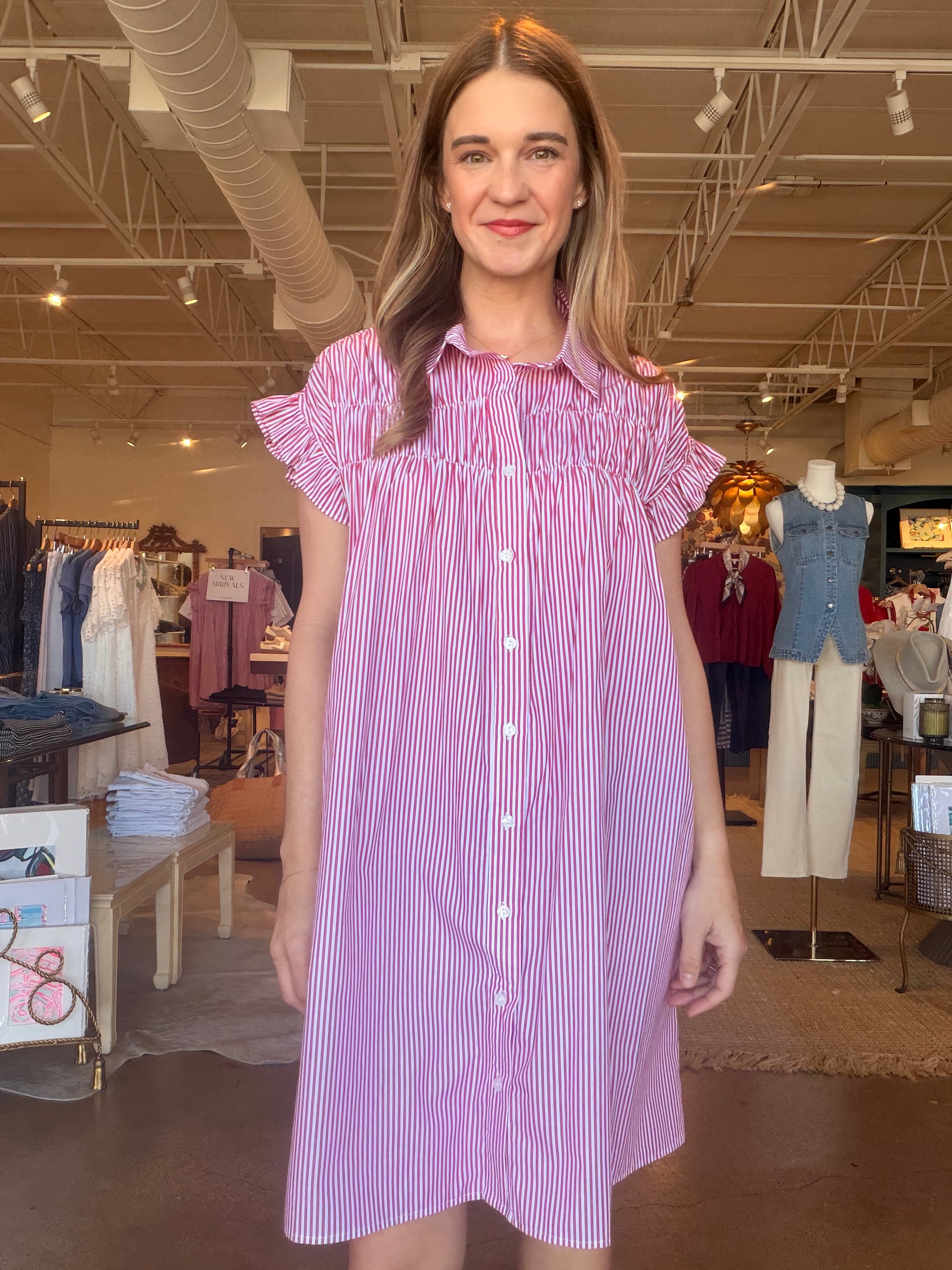 You already know and love this one — and now she’s back in a fresh color. The Jenna is that easy, throw-on dress that somehow still feels styled, with the relaxed silhouette, button front, and ruffle sleeves giving it just enough personality.