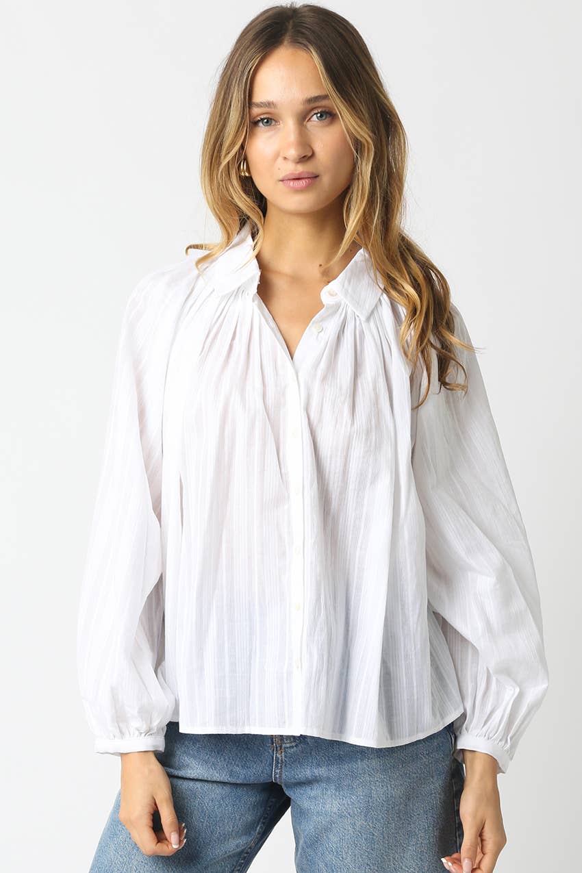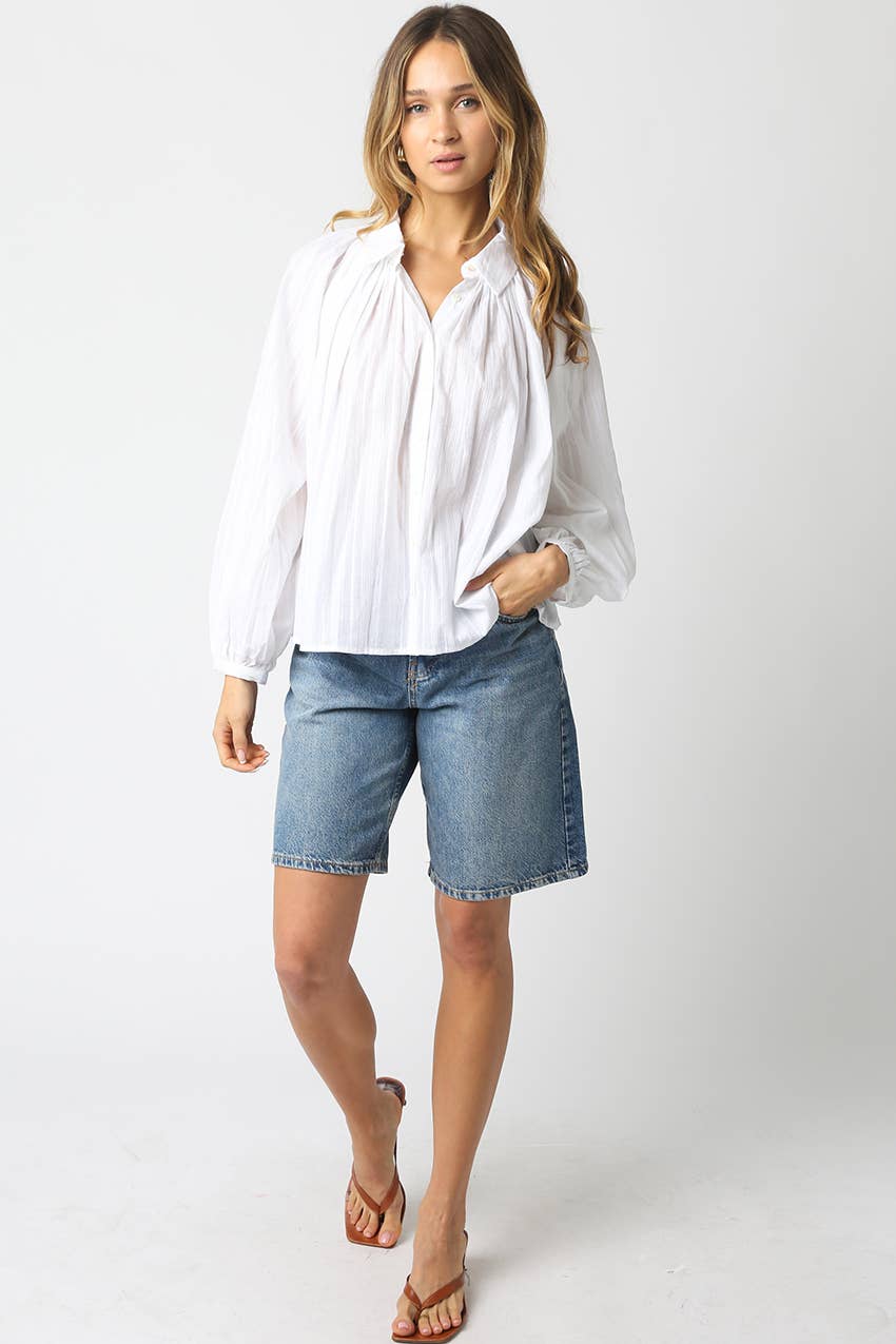 Lana Relaxed Button Down Blouse- White