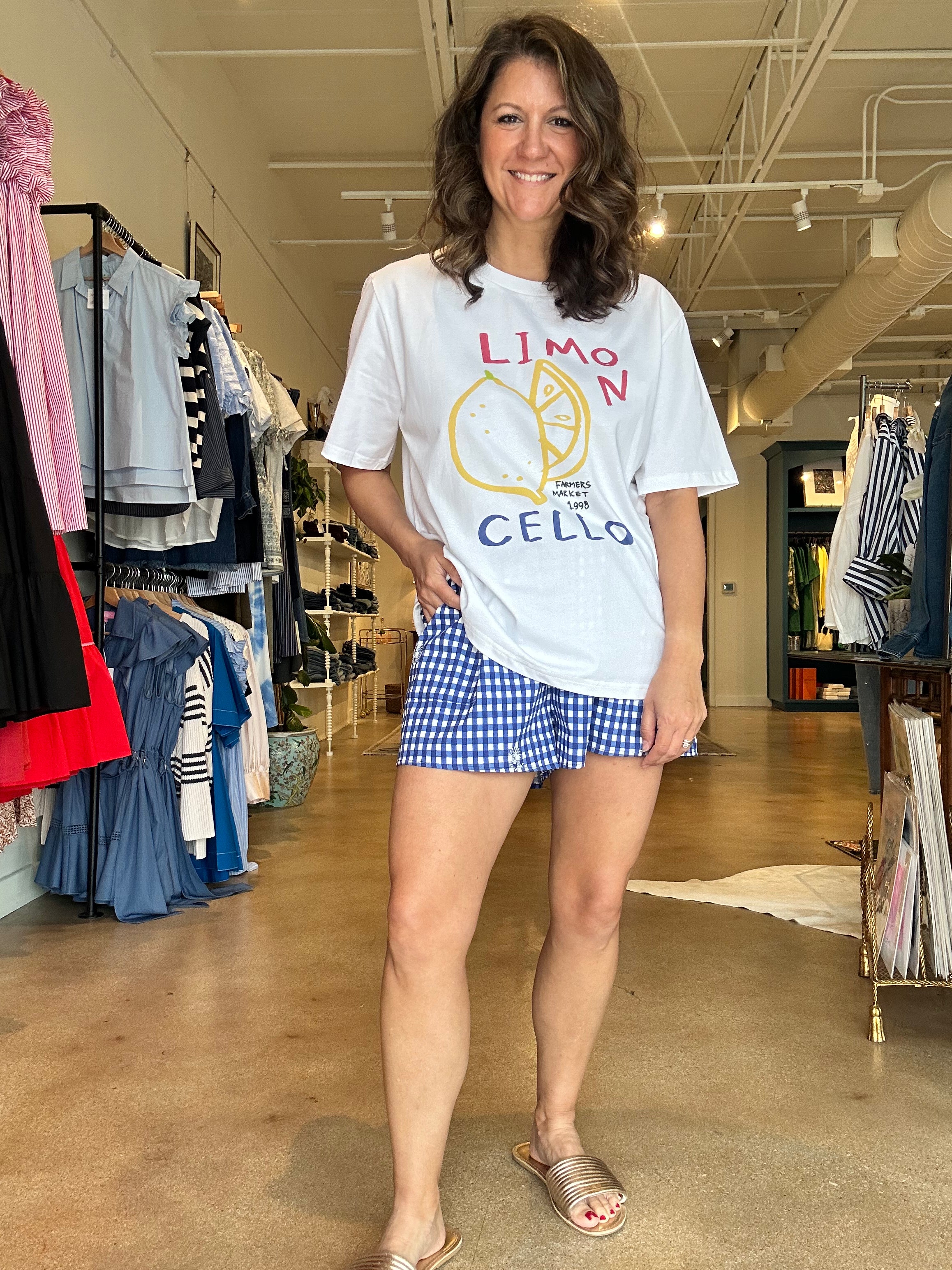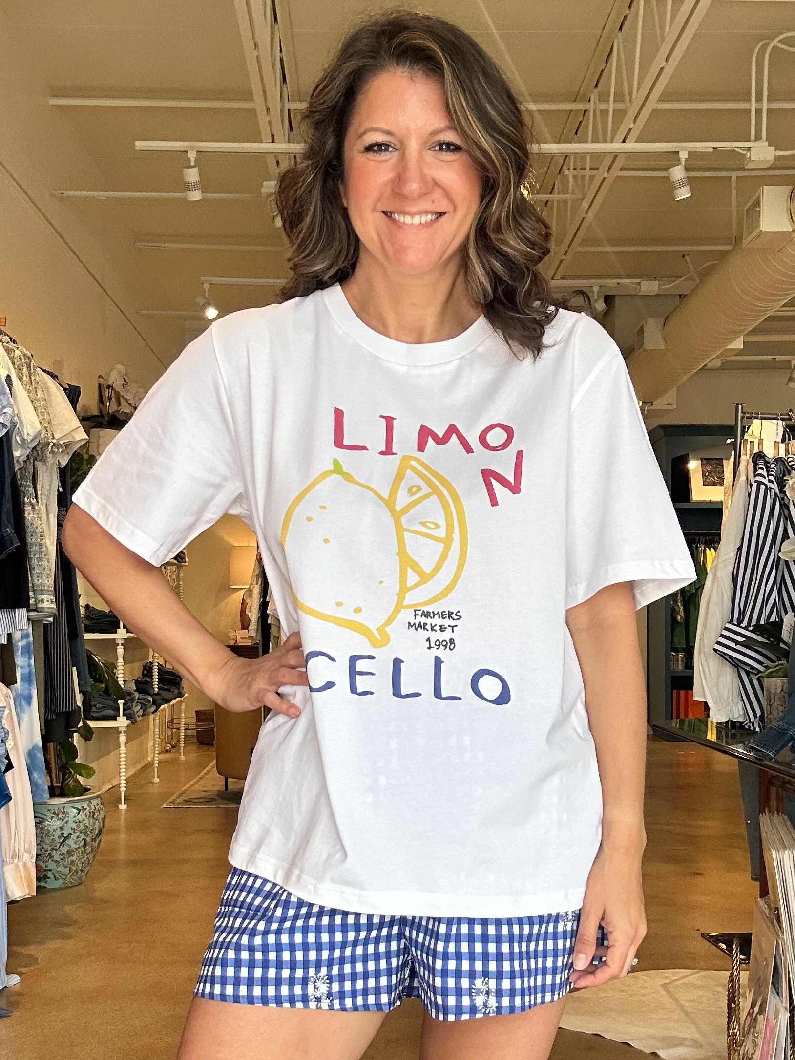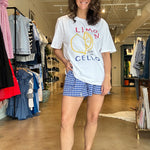 When life gives you lemons… you make limoncello. This playful graphic tee features a colorful limoncello print that instantly gives it that carefree, vacation-on-the-coast energy while still being an easy everyday piece. Style it with denim shorts, a breezy skirt, or lounge shorts for casual days, travel, or running around town when you want something fun but effortless. The relaxed fit is true to size and drapes comfortably through the body for that easy graphic tee feel.