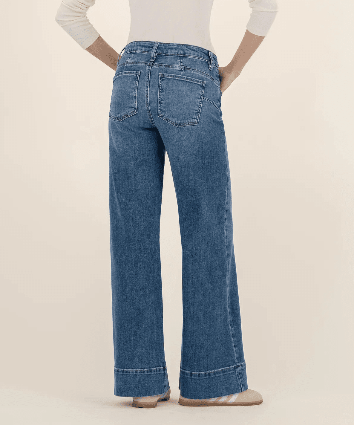 These high-rise wide leg jeans have that confident, grounded feel that comes from a great cut and thoughtful details. Designed in a classic medium wash, they’re full length, making them especially great for taller girls or anyone who loves a longer, uninterrupted line through the leg. The wide hem adds visual weight at the bottom (in the best way) and gives the silhouette a modern, intentional finish, while Fab Ab pockets offer subtle shaping and the stretch denim keeps things comfortable for all-day wear.