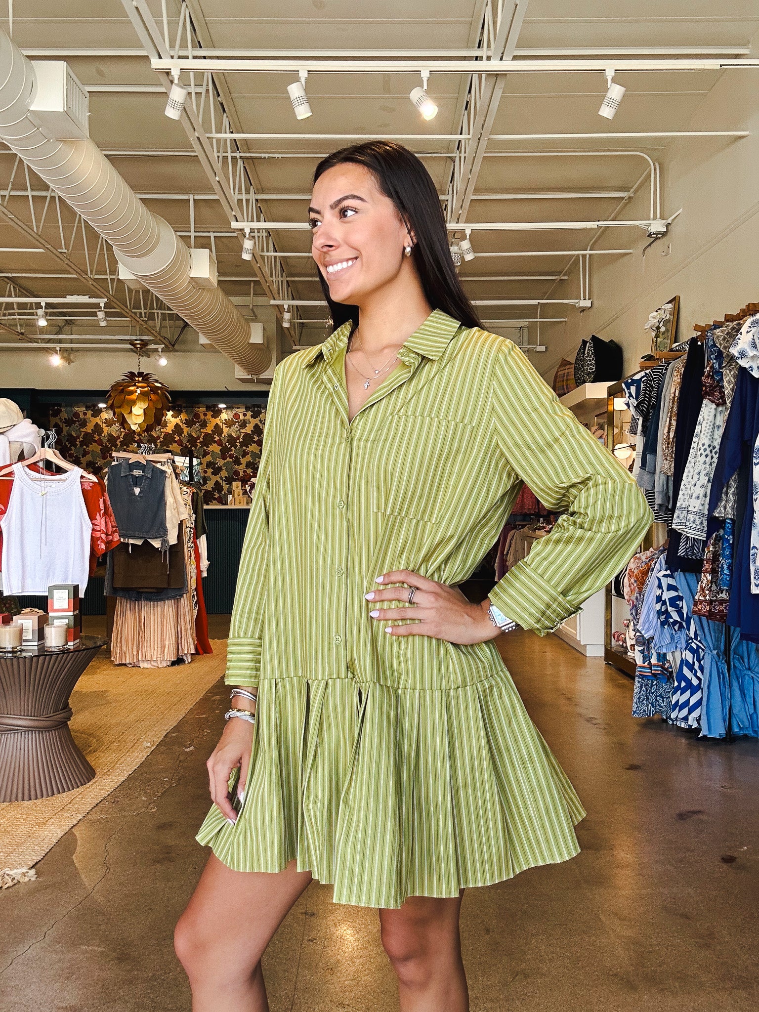 Olive Stripe Shirt Dress