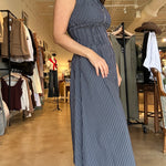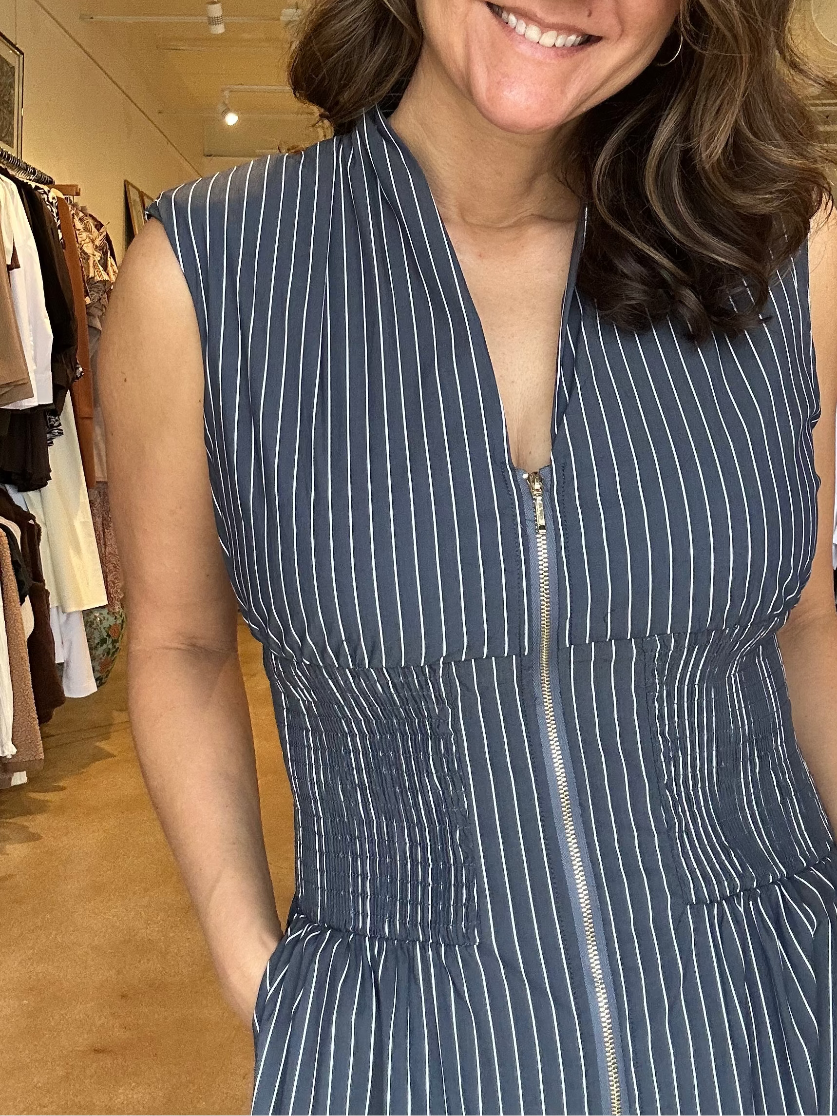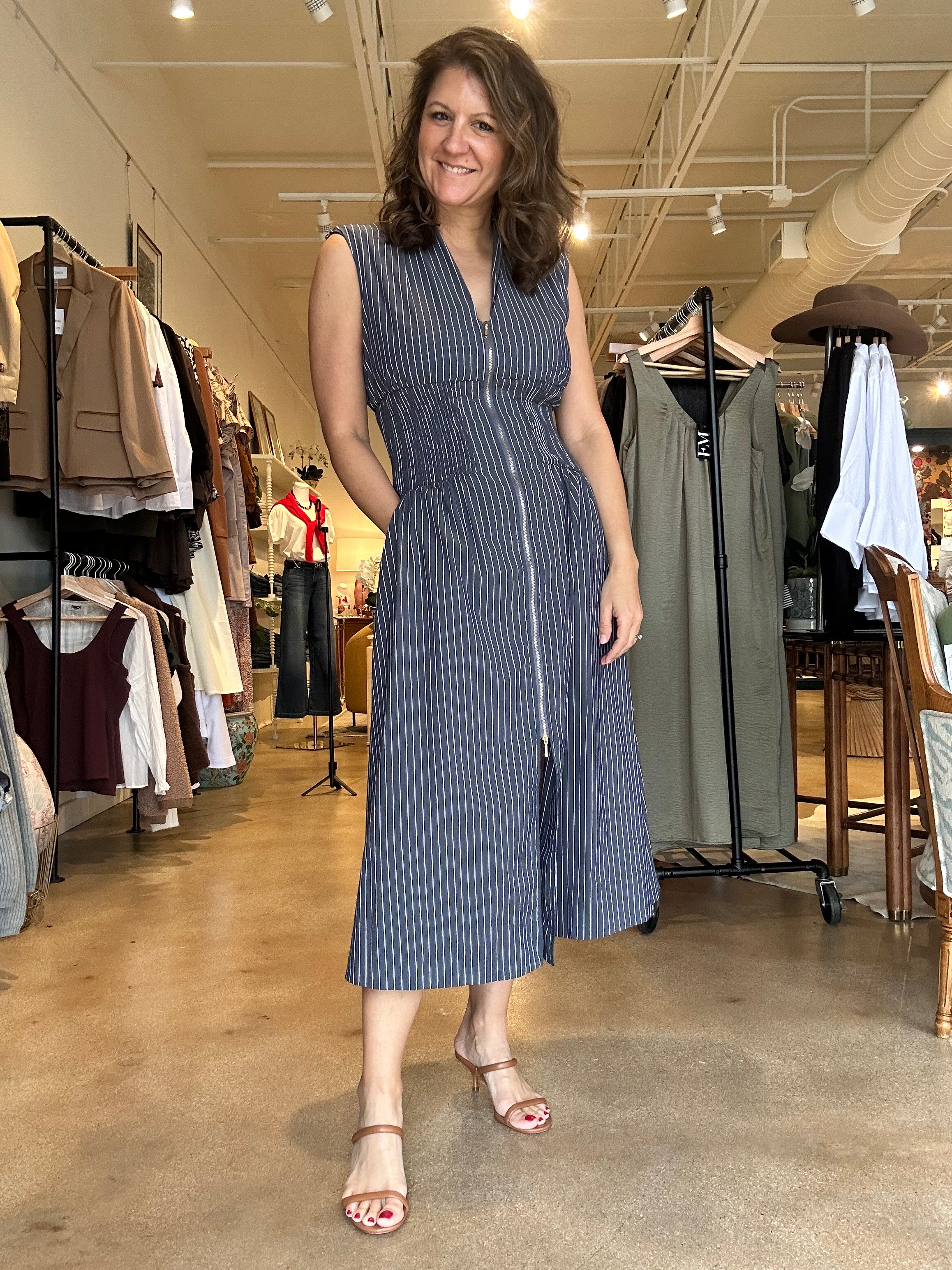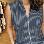 Skye Zip Front Dress- Indigo Stripe